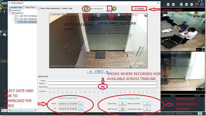 - Select "GO ARCHIVE SEARCH" option by right clicking on camera view port.