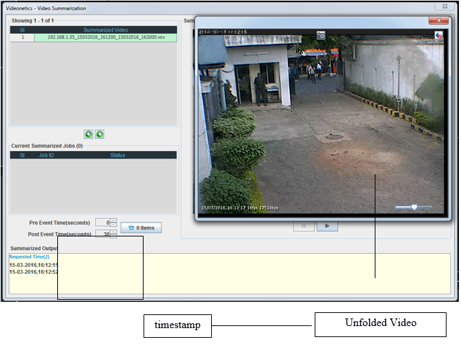5. Watch unfolded video: Double click on any point on the summarized video will give number(s) of timestamp(s) on bottom panel.